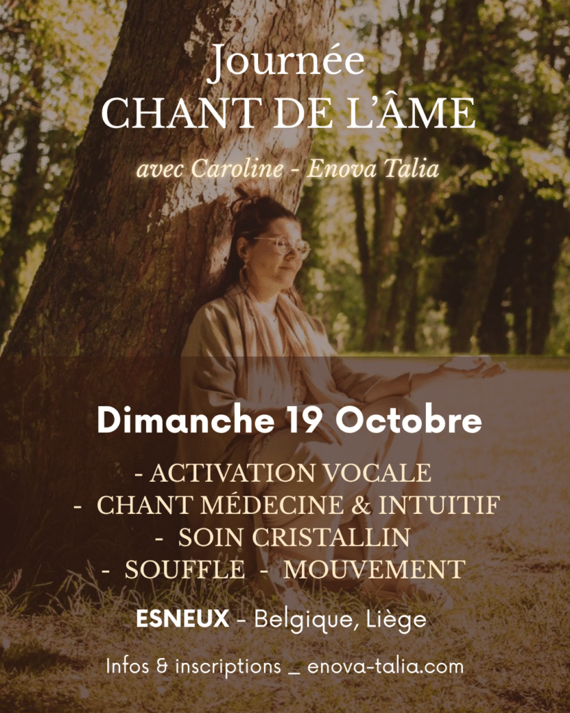 Guidez dans une connexion authentique, dans la douce puissance d’exprimer ce qui vit en soi pour oser sa voix chantée. Nous vibrerons au son du cristal en reliance à la vérité du cœur, dans l’incarnation du corps par l’âme.