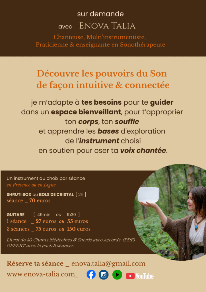 Avec Activation Vocale, Soin Chantant, Initiation au Chant Intuitif & instruments au choix [ ShrutiBox / Bols de Cristal / Tambour … ]